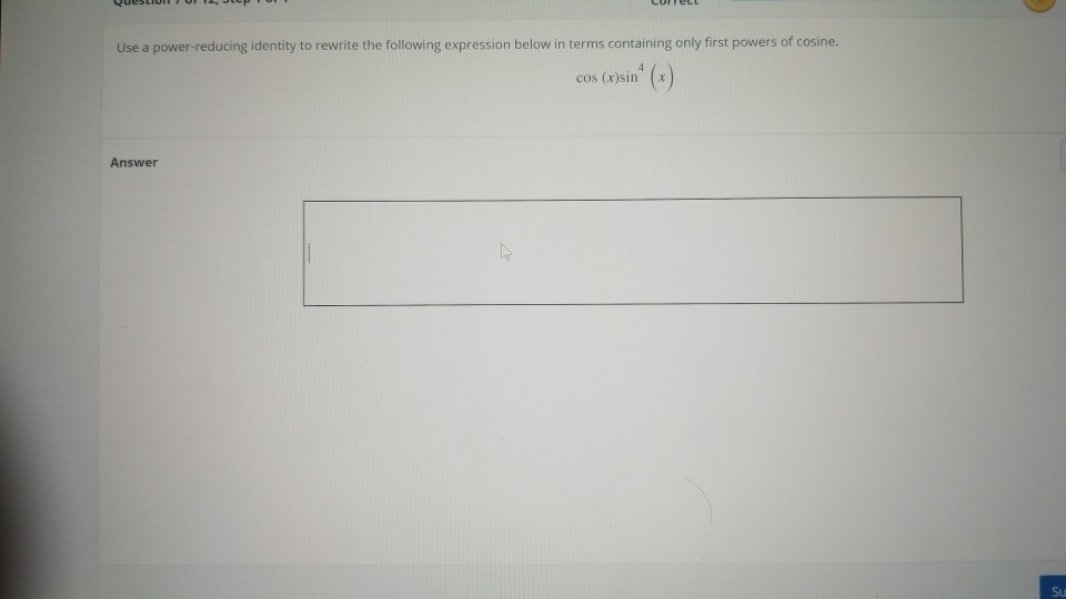 The trigonometry identities power reduction calculator computes sin 2 u, cos 2 u and tan 2 u for given angle. The power reduction formulas allows to transform sin 2 (u) and cos 2 (u) into expressions that contains the first power of cosine of double argument. Apply the appropriate power reduction identity to rewrite cos 4 θ in terms of sin θ and cos θ (and both must.